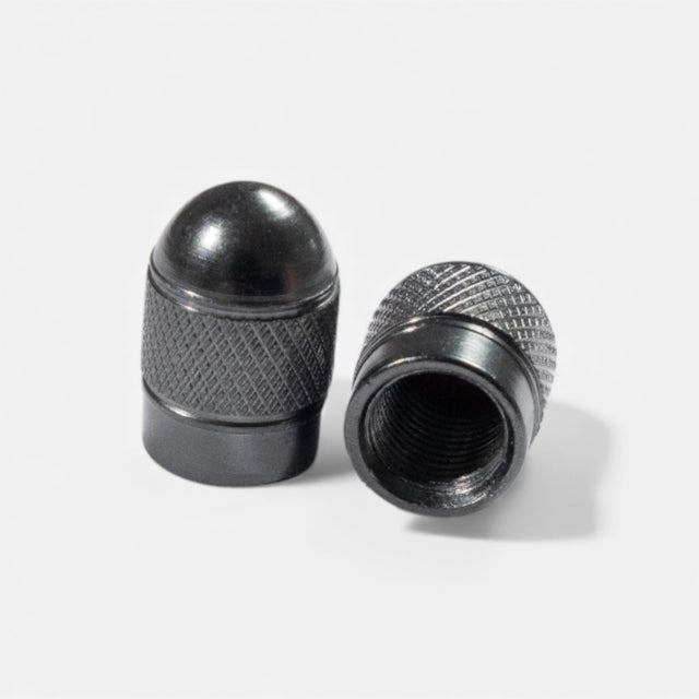Paire de 2 bouchons de valve ronds en aluminium anodisé gris, conçus pour protéger vos valves Schrader de la poussière, de l’humidité et des petits chocs. Le moletage antidérapant garantit une manipulation simple et précise lors du vissage.