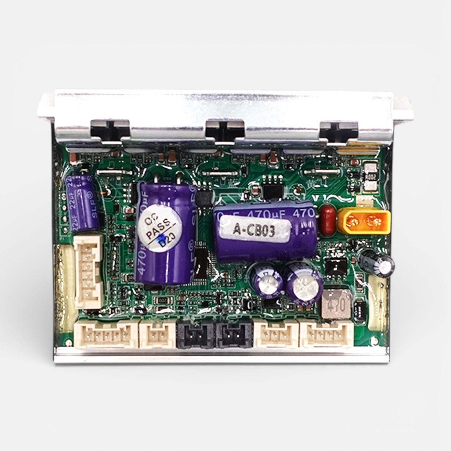 Elektronische Leiterplatte, bestückt mit Bauteilen, die so konstruiert sind, dass sie Vibrationen, mäßigen Stößen und den elektrischen Belastungen des alltäglichen städtischen Gebrauchs standhalten.