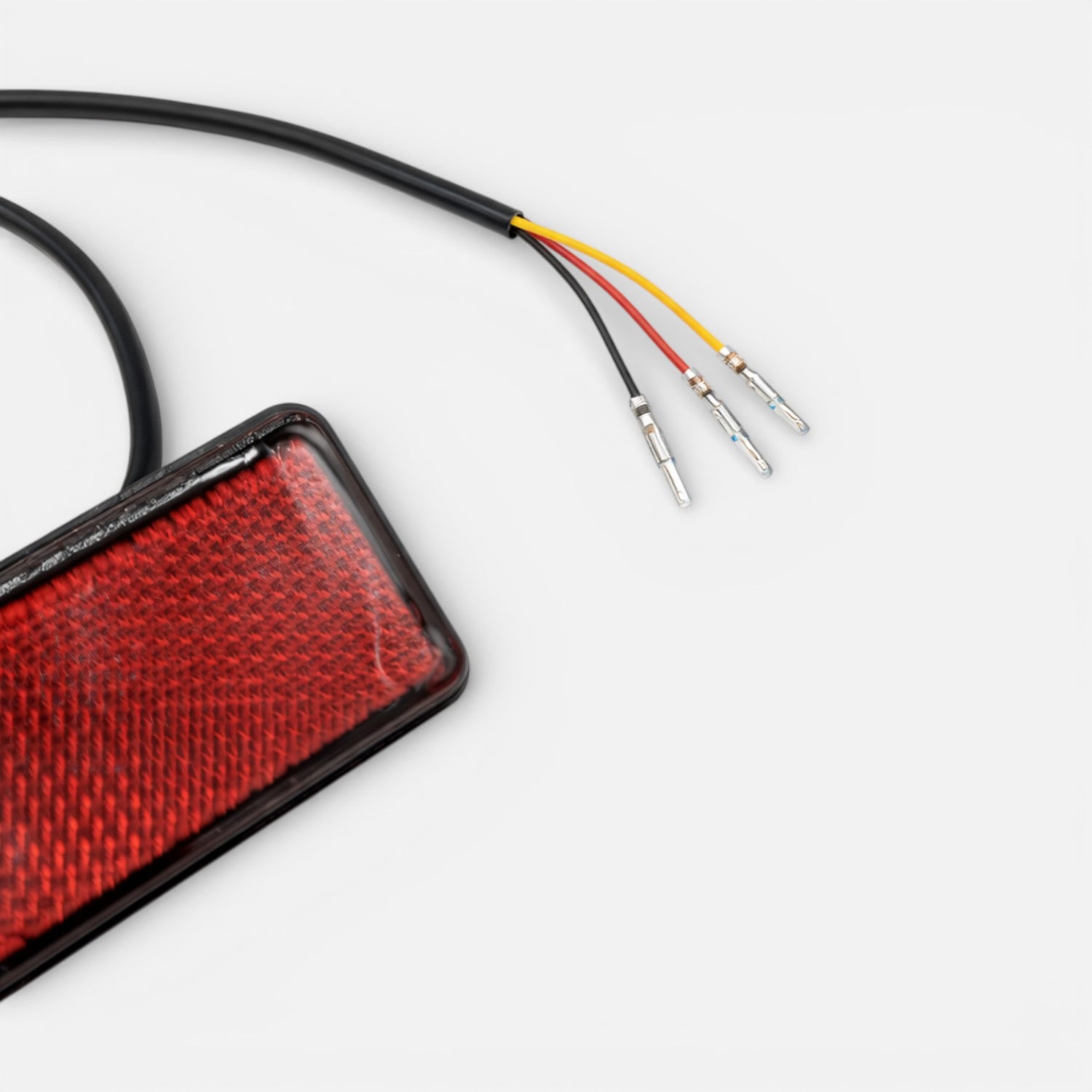Le faisceau trois fils permet une alimentation stable et une gestion correcte des fonctions de feu arrière et stop, sans variation d’intensité ni coupure sous vibration.