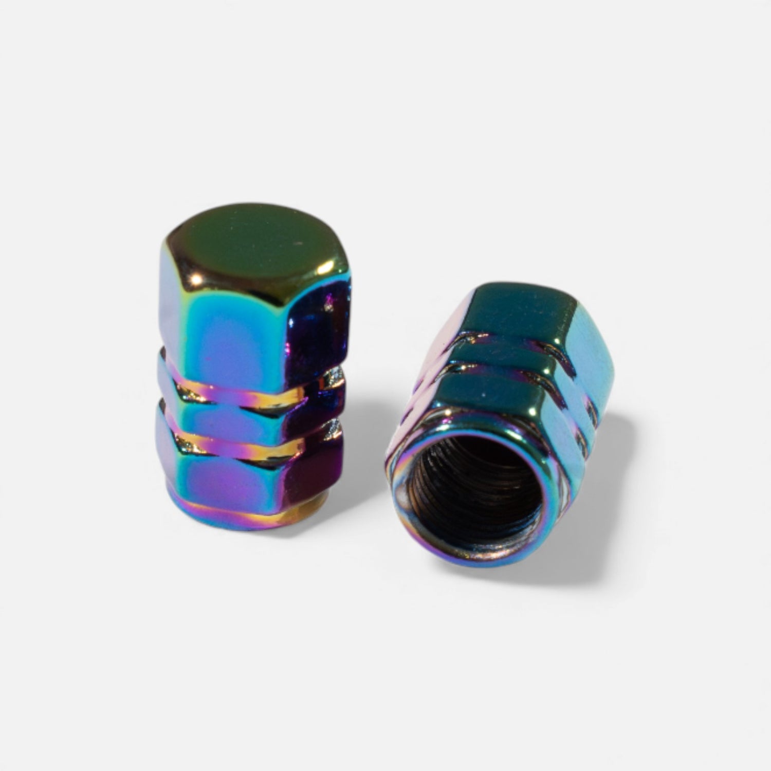 Rainbow aluminum valve caps (x2) – Scooter, bicycle, car