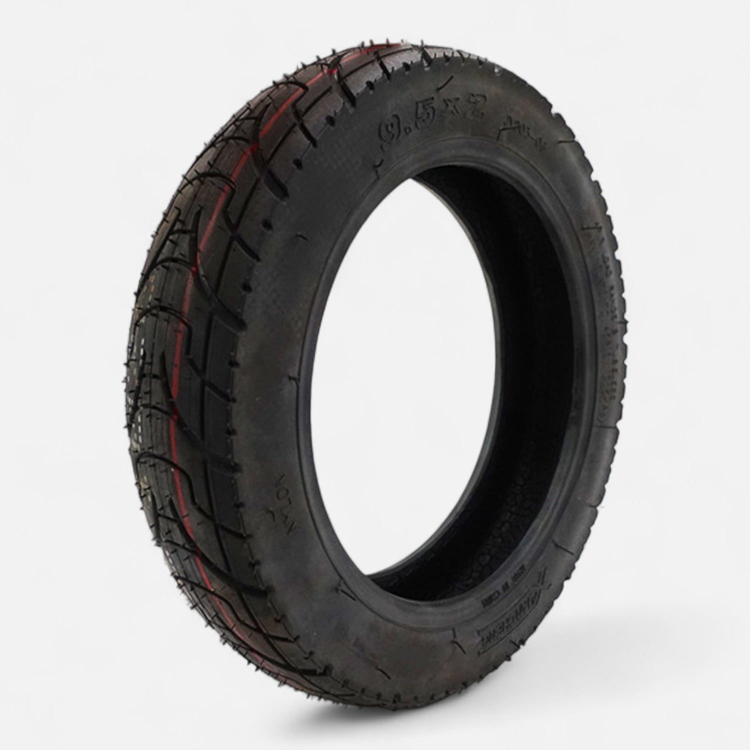 Reinforced 9.5-inch tire, designed to improve comfort , stability , and shock resistance on Xiaomi scooters. Taller than a standard 8.5-inch tire, it absorbs vibrations better and provides a smoother ride, ideal for daily urban commutes.