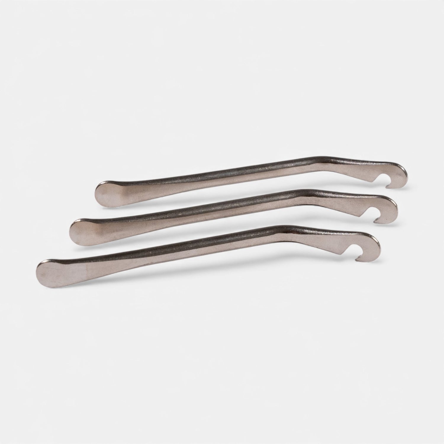 Set of 3 metal tire levers designed to facilitate the mounting and dismounting of electric scooter tires. Their ergonomic shape allows for effortless tire removal while preventing damage to the rim. An essential tool for any wheel work.