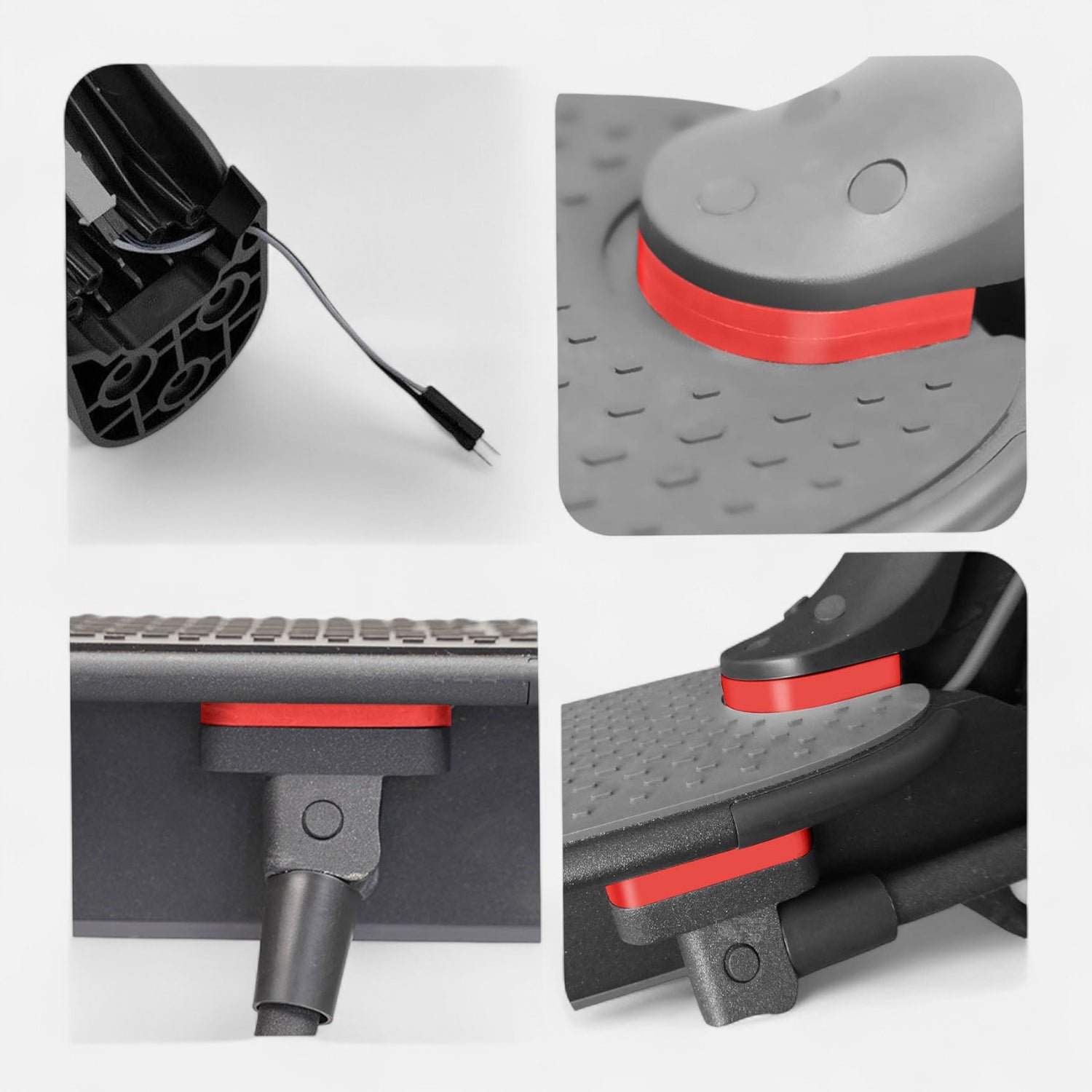 The kit also includes a cable extension for the rear light , essential when the back of the scooter is raised. The red version is discreet and easy to spot during installation.