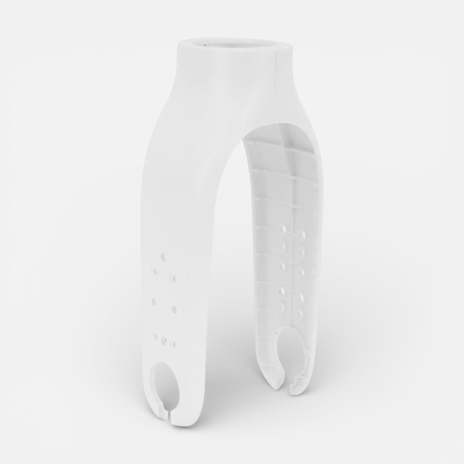 Xiaomi white plastic front fork cover, designed to protect the fork mounting area.