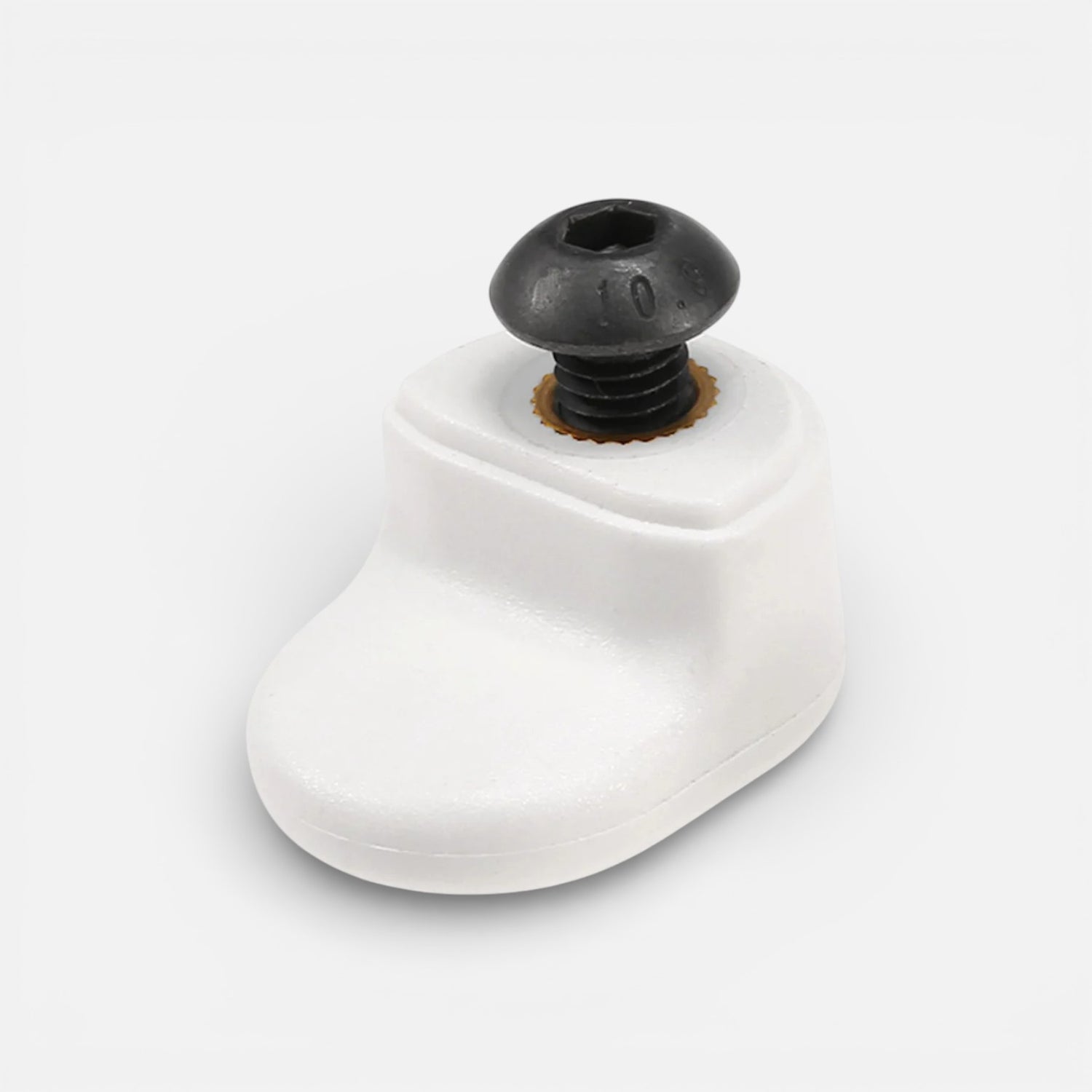 White rear hook designed to securely hold the mudguard on Xiaomi scooters. It's a great replacement for a worn or broken hook and ensures a stable attachment thanks to its reinforced metal insert. A simple, effective, and essential part to prevent mudguard vibrations.